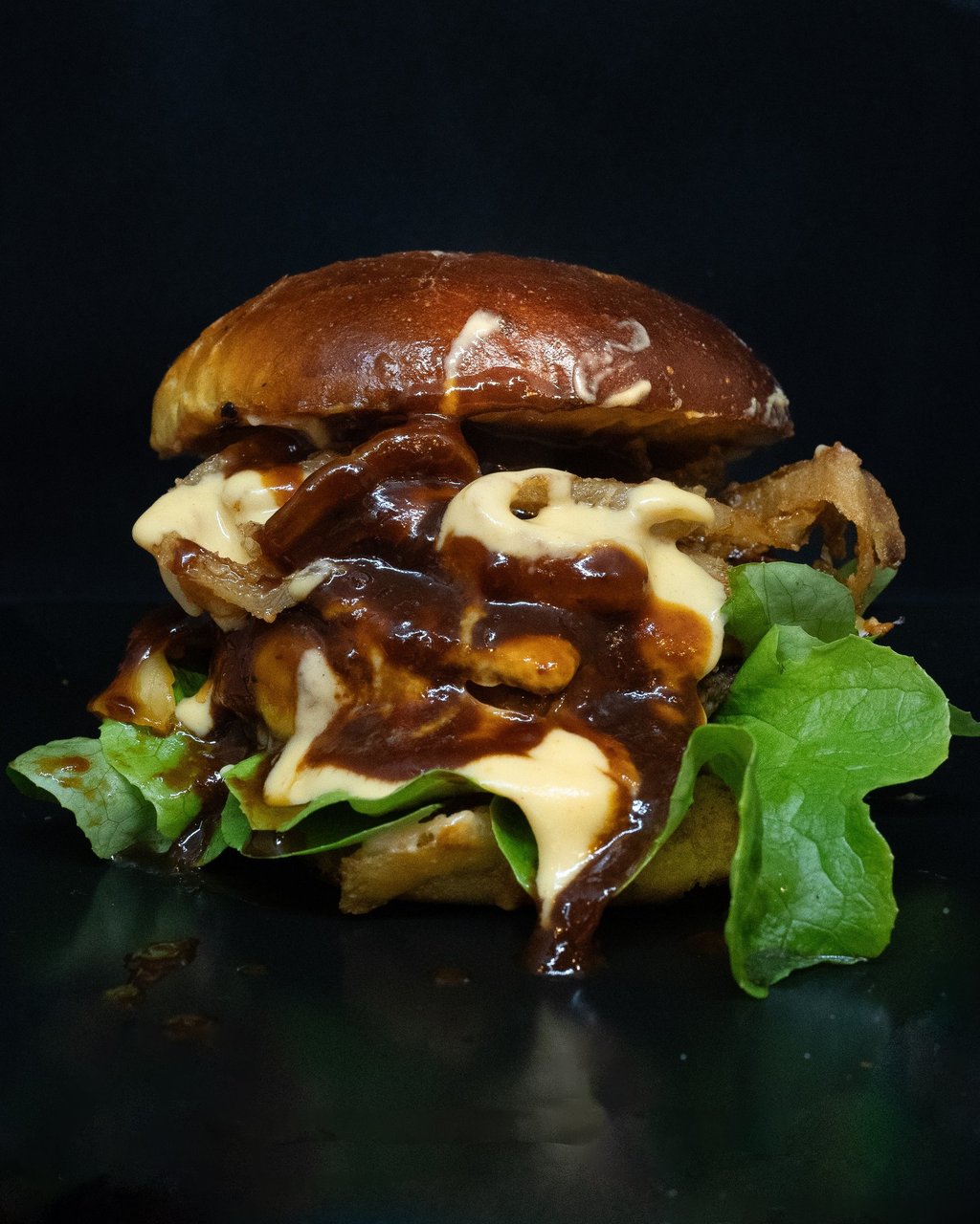 mit geschmolzenem Gorgonzola, Rinderbacon und Senf Mayo (A,B,D,E,12,13,16,17,18,21,25)